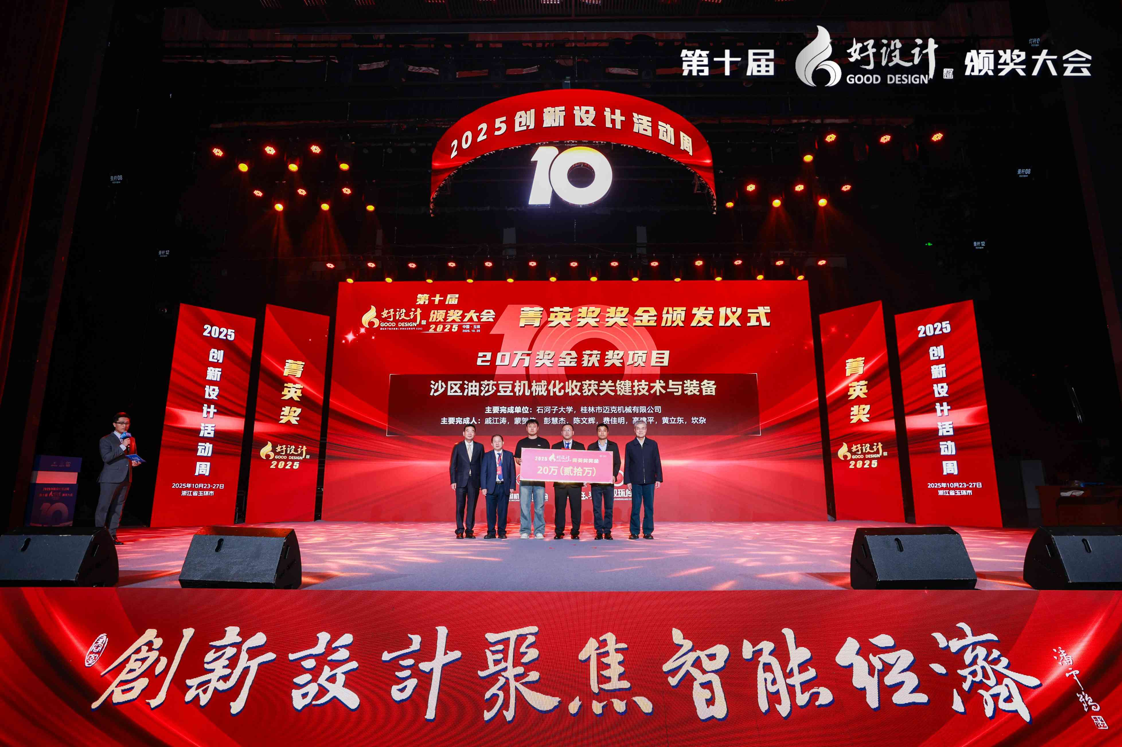 奖项发布环节,历届好设计代表上台启动2025第十届好设计获奖项目发布仪式。中国机械工程学会副理事长邓宗全院士宣读2025年度好设计奖发布辞,2025第十届好设计奖经全国七大区及十五个合作伙伴组织申报和区域提名,共推出198个项目进入全国评选。好设计奖采取网评、初评、终评三级评审制度,网评通过74个项目进入初评,初评通过33个项目进入终评,经终评答辩最终评选出10项金奖、20项银奖和3项菁英奖。2025年度好设计奖总奖金230万元,总奖金规模创新高,彰显对创新设计人才与成果的高度认可。