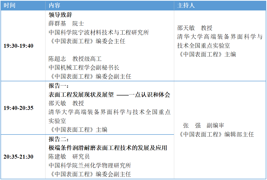 表面工程作为装备制造业中四大重要基础工艺之一,也是提升机械制造整体水平的核心技术之一,对实现制造强国战略具有重要的支撑作用。为助力我国表面工程学术研究的发展,搭建表面工程领域高水平学术交流平台,同时进一步加强编辑与科研人员的交流,增进科研人员对期刊的了解,推进期刊高质量发展,中国机械工程学会、中国机械工程学会表面工程分会、中国机械工程学会再制造工程分会、中国机械工程学会摩擦学分会、中国电工技术学会电子束离子束专业委员会、中国腐蚀与防护学会磨蚀与防护技术专业委员会、中国机械工程学会机械科技信息分会共同主办中国表面工程云论坛,云论坛计划每月举办一次,现将首期云论坛相关事宜通知如下。