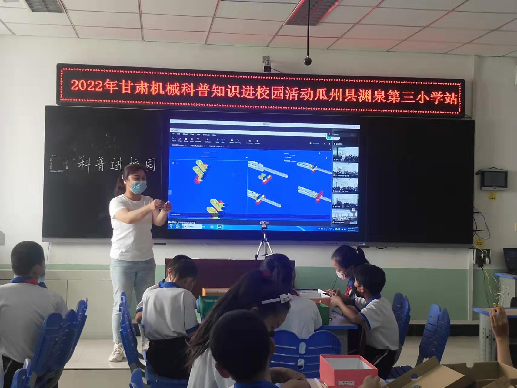 此次活动以展示、体验、互动、“线上+线下”等形式开展。活动主办方中国机械工程学会邀请了俄罗斯工程院外籍院士、苏州大学机电工程学院院长孙立宁教授为张掖市六县区7所学校、酒泉市七区县12所学校近2500名孩子做了题为《机器人的昨天今天与明天》的线上科普讲座。