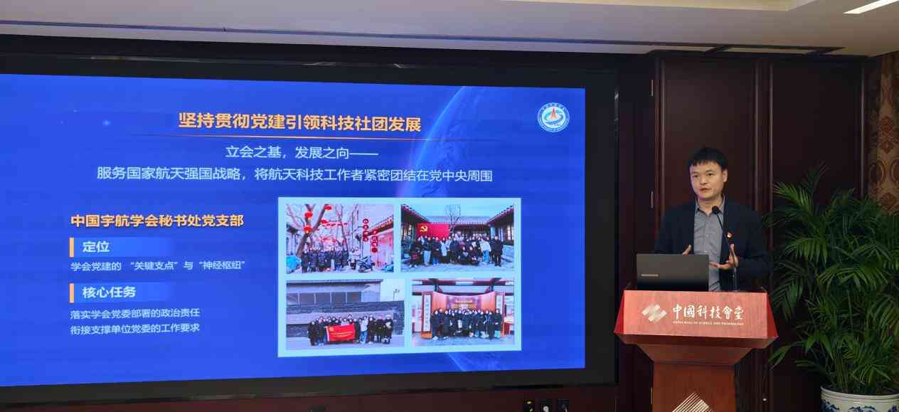 中国宇航学会副秘书长、党支部书记姜军作报告