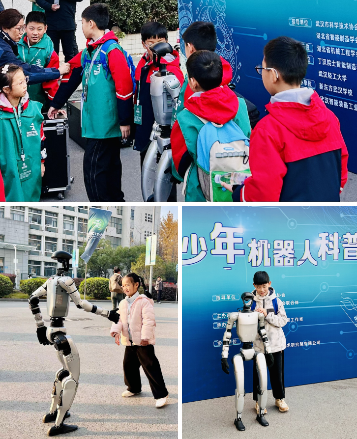 孩子们与机器人开心互动此次展演活动在武汉市科学技术协会的指导下,由湖北省机械工程学会联合丁汉院士智能制造科普工作室、武汉轻工大学等单位共同举办。活动以赛事为牵引,将图纸上的构想转化为灵动的机械,用代码里的逻辑驱动创新的轨迹。现场的青少年在动手实践、团队协作、广泛交流的过程中,亲身体验了工程技术的魅力,深刻理解科学探索的路径,这正是“从娃娃抓起”培养科学兴趣、塑造科学家潜质最鲜活、最有效的形式。活动还得到了湖北省智能制造学会联合体、新东方武汉学校、武汉智能装备工业技术研究院有限公司等单位的大力支持,凝聚社会各方力量搭建起更多元、更开放的科普平台,努力为每一位心怀科学梦想的青少年铺就更为广阔的成长之路。