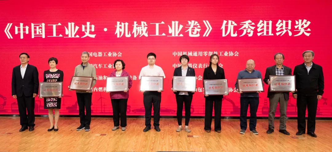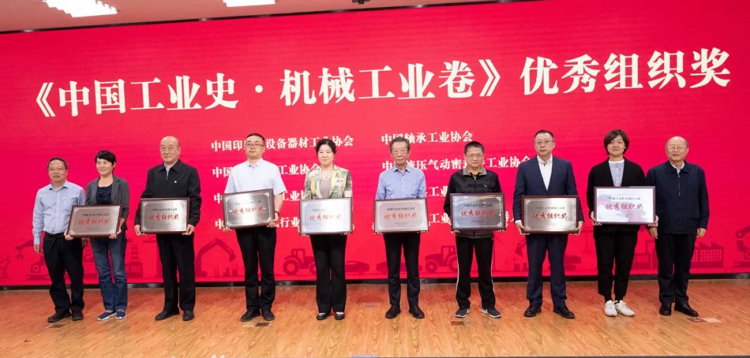 会议对在编纂工作中组织工作优异和做出突出贡献的单位进行了表彰。赵驰同志宣读了表彰决定,与会领导向中国农业机械工业协会等25家单位颁发了优秀组织奖,向中国机械工程学会等6家单位颁发了突出贡献奖。最后,举行了新书首发仪式。中国工经联会长李毅中和机械卷编委会主任王瑞祥为新书揭幕。红色幕布的揭开将新书首发仪式推向高潮,《中国工业史•机械工业卷》正式与读者见面。