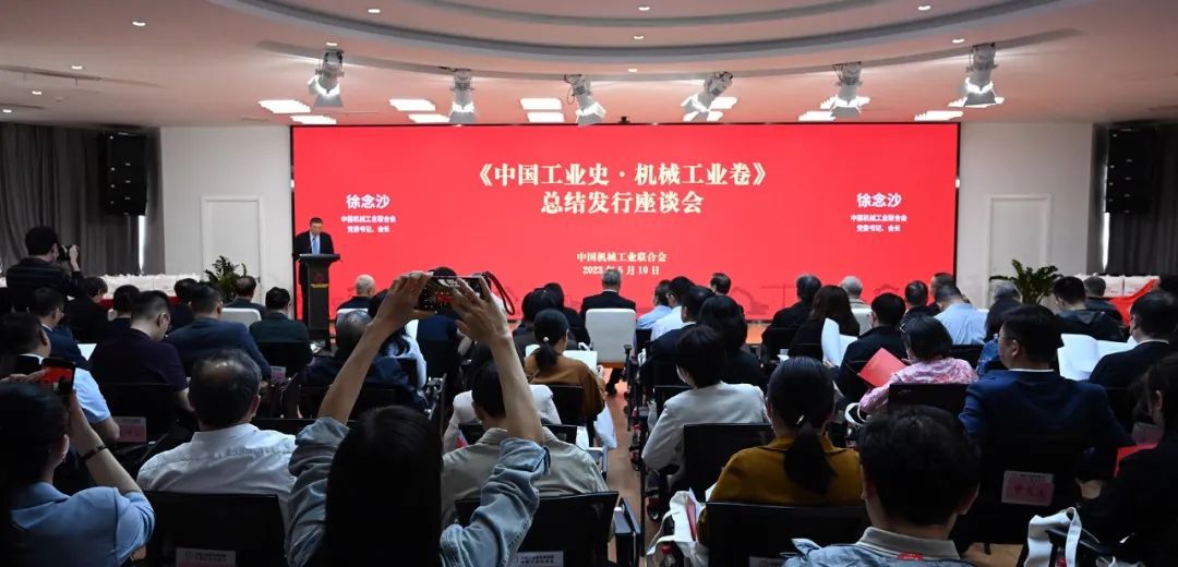 2023年5月10日,中国机械工业联合会(简称中国机械联)在京举办《中国工业史•机械工业卷》总结发行座谈会。组织、出版单位及专家代表中国工经联会长、中国工业史编委会主任李毅中,执行副会长、编委会常务副主任路耀华、执行副会长郜志宇,党委副书记、纪委书记兼编史办主任高家明,工业史编纂工作督导组组长李占永,中央党校出版社主任蔡锐华,清华大学科学技术史暨古文献研究所所长冯立昇;机械行业老部长何光远、包叙定、邵奇惠、于珍、孙昌基,中国机械联原会长、机械卷编委会主任王瑞祥,中国机械联党委书记、会长徐念沙,机械卷编委会常务副主任、执行主编蔡惟慈,党委副书记、编委委员薛一平,副书记兼纪委书记赵文成,党委常委、编委会副主任于清笈、赵驰,党委常委、编委委员杨学桐,机械信息院党委书记、机械出版社社长郭锐,以及工业史编史办、首批出版七卷代表,机械卷编委,承编单位与新闻媒体代表等120余人出席会议。会议由于清笈主持。
