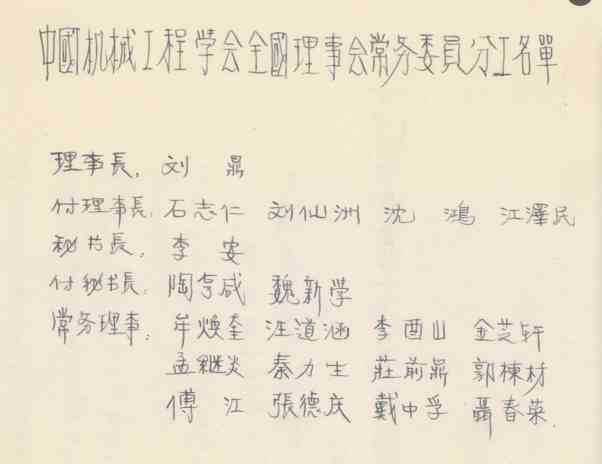 副理事长:石志仁、刘仙洲、沈鸿、江泽民