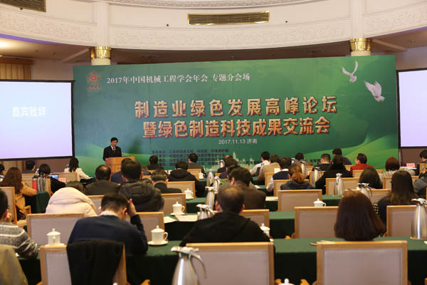 11月13日,中国机械工程学会年会专题活动—制造业绿色发展高峰论坛暨绿色制造科技成果交流会在济南市南郊宾馆隆重举行。本次会议由中国机械工程学会及其环境保护分会共同举办,山东标准化协会和山东省标准化研究院承办。出席论坛的领导与嘉宾有环保部政法司环境政策处副处长赖晓东、中国机械工程学会副理事长兼秘书长陆大明、中机生产力促进中心党委书记、主任邱城、山东机械设计研究院夏江海副院长、力博重工科技股份有限公司副总经理潘宪平、山东标准化协会秘书长谢淑娟、陆军装甲兵工程学院教授朱胜、合肥通用机械研究院副院长范志超、重庆大学教授曹华军、山东大学机械工程学院副院长李方义、济南第二机床集团张世顺副总经理等。会议由中机生产力促进中心党委书记,主任邱城主持,陆大明秘书长和谢淑娟秘书长先后致辞,对论坛的召开表示祝贺。来自全国各地绿色制造领域的科技工作者代表100余人出席了本次会议。