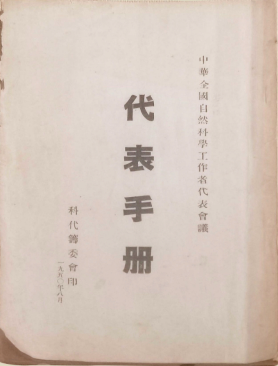 1950年8月,中华全国自然博学工作者代表会议代表手册。