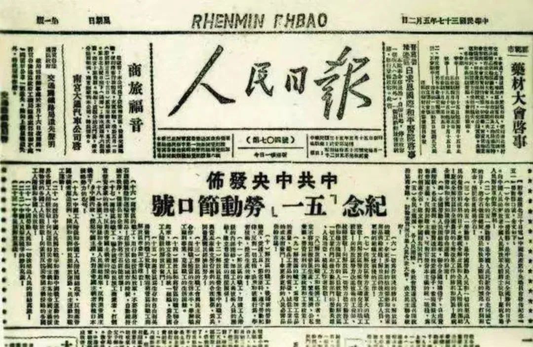 中共中央发布《纪念“五一”劳动节口号》。