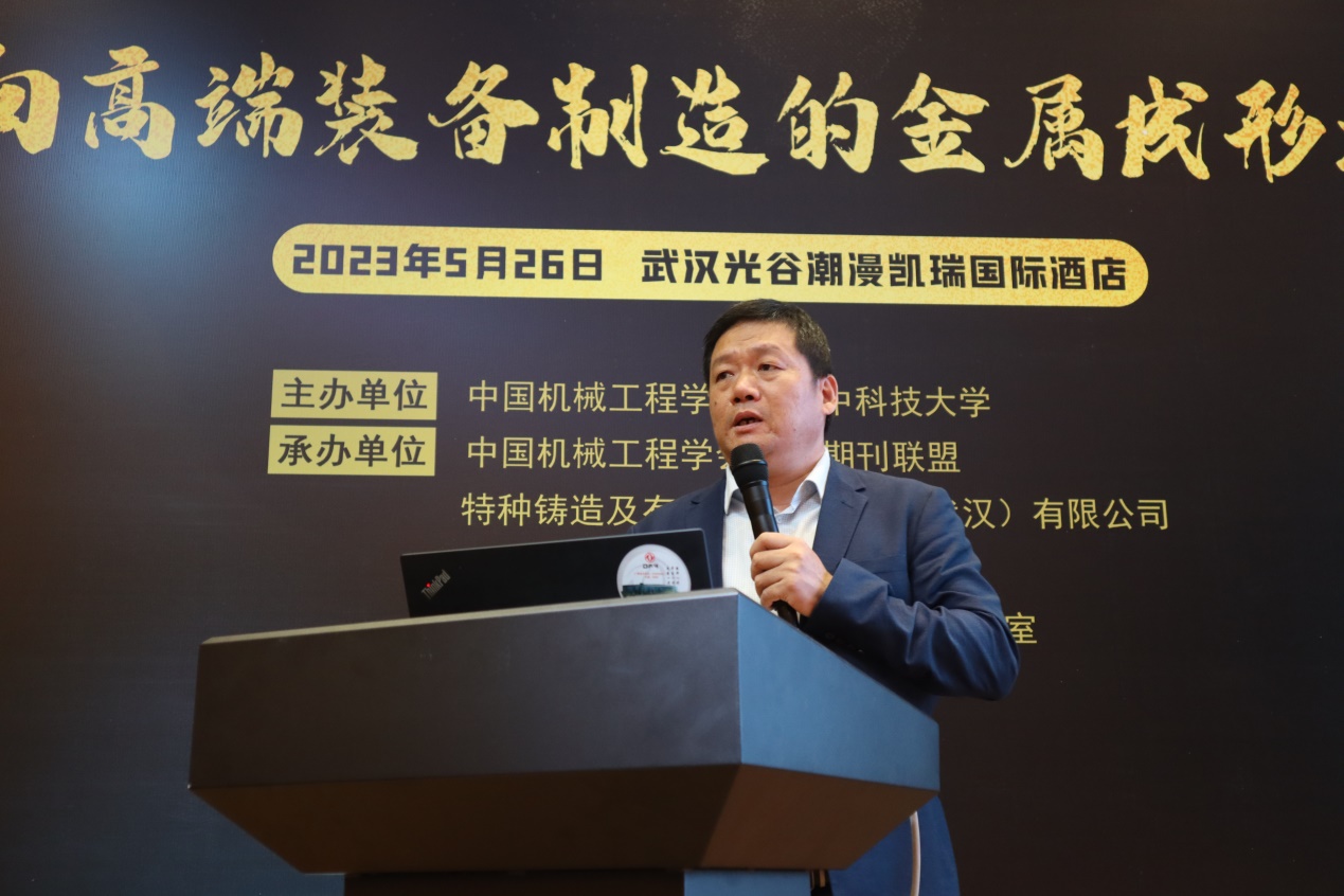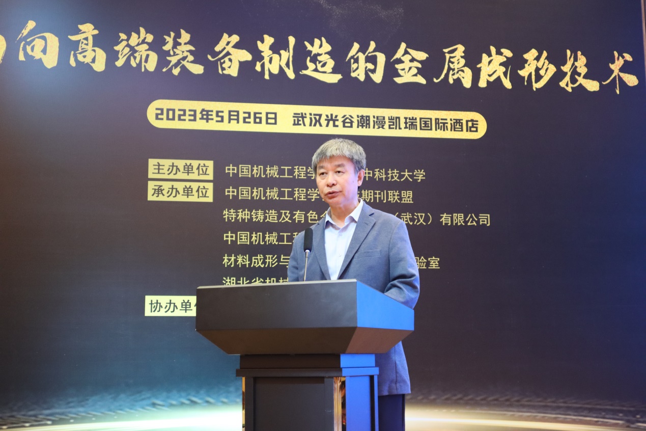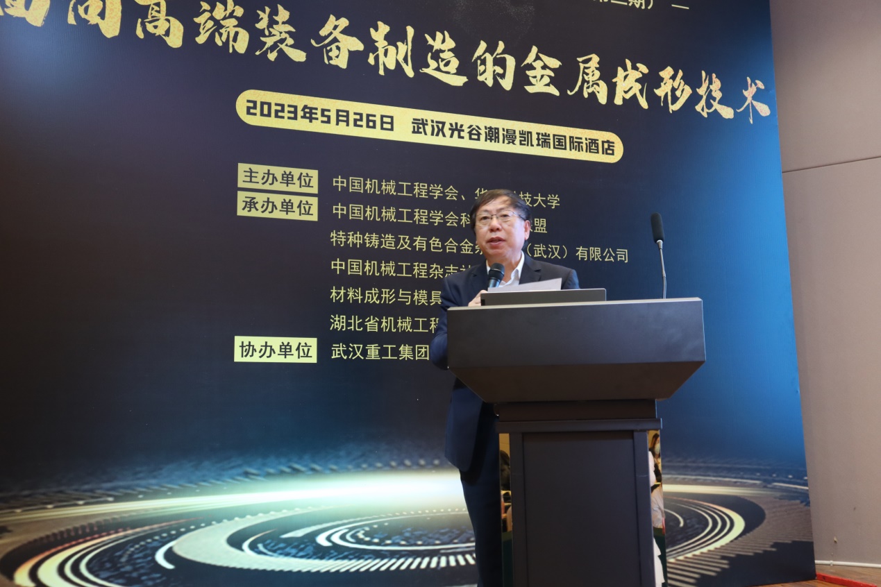 学术报告环节由华中科技大学吴树森教授主持。邀请5位领域专家做专题学术报告。华中科技大学严有为教授做了题为《核聚变堆用纳米ODS钢的电弧熔丝增材制造新技术》的报告;武汉理工大学宋燕利教授做了题为《汽车高质量轻量化成形技术与装备》的报告;中南大学喻海良教授做了题为《面向极高服役性能的金属材料深冷成形技术》的报告;华中科技大学周建新教授做了题为《复杂铸件成形过程多物理场单件化模拟仿真技术》;东风汽车集团王泽忠高工做了题为《超大型铸锻一体装备开发》的报告。
