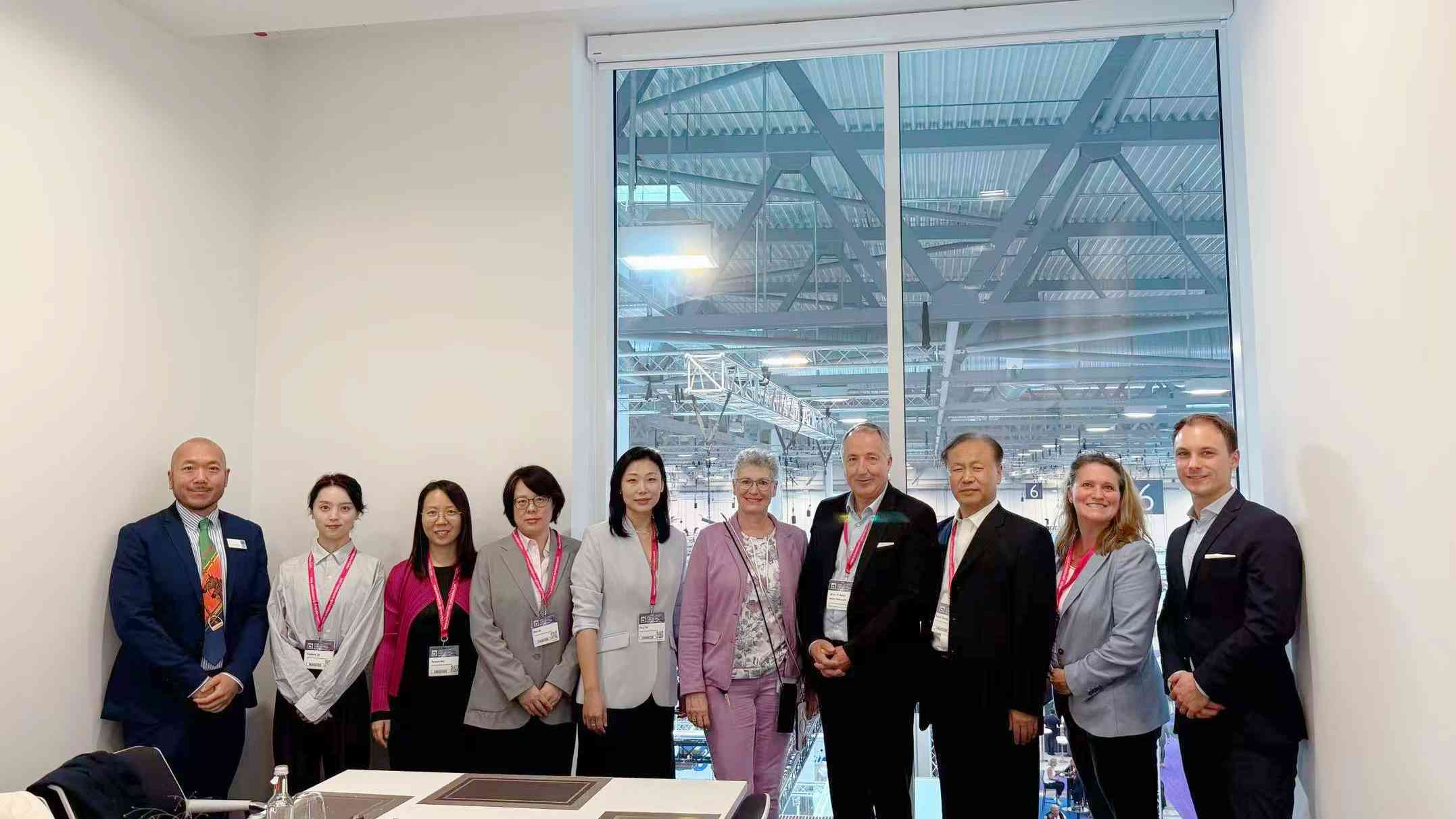 在保障企业参展的同时,中国机械工程学会代表团还主动担当“国际合作推动者”角色,与展会主办方及德国行业权威机构开展多场高层会谈,为中国焊接产业搭建更广阔的国际合作平台。代表团与德国埃森展览公司总经理Kuhrt先生、首席营销官Sabina女士、SCHWEISSEN & SCHNEIDEN项目负责人Christina女士等高层围绕展会合作升级、展商服务优化等事宜深入交流。Kuhrt先生高度评价中国展团整体形象,并与张喜军秘书长就中国即将实施的“十五五”规划交换意见,表示对其中的战略方向表示赞同与支持,为未来双方在展会资源共享、技术交流联动等方面的合作奠定基础。