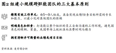 俗话说兵贵神速。面对市场大量的突发状况,企业如果延续以往的风格,自上而下发布指令,由各个层级陆续响应,容易导致耗时过长、效率低下的局面。相反,企业应积极动员整个组织,明确任务的优先次序,广泛听取员工意见获取最前线的客户反馈并快速落实相关解决方案。把研发、制造、供应链、销售等职能并联起来,通过小规模跨职能团队的模式,快攻快打,抢占先机。组建小规模跨职能团队有三大基本原则(见图2):